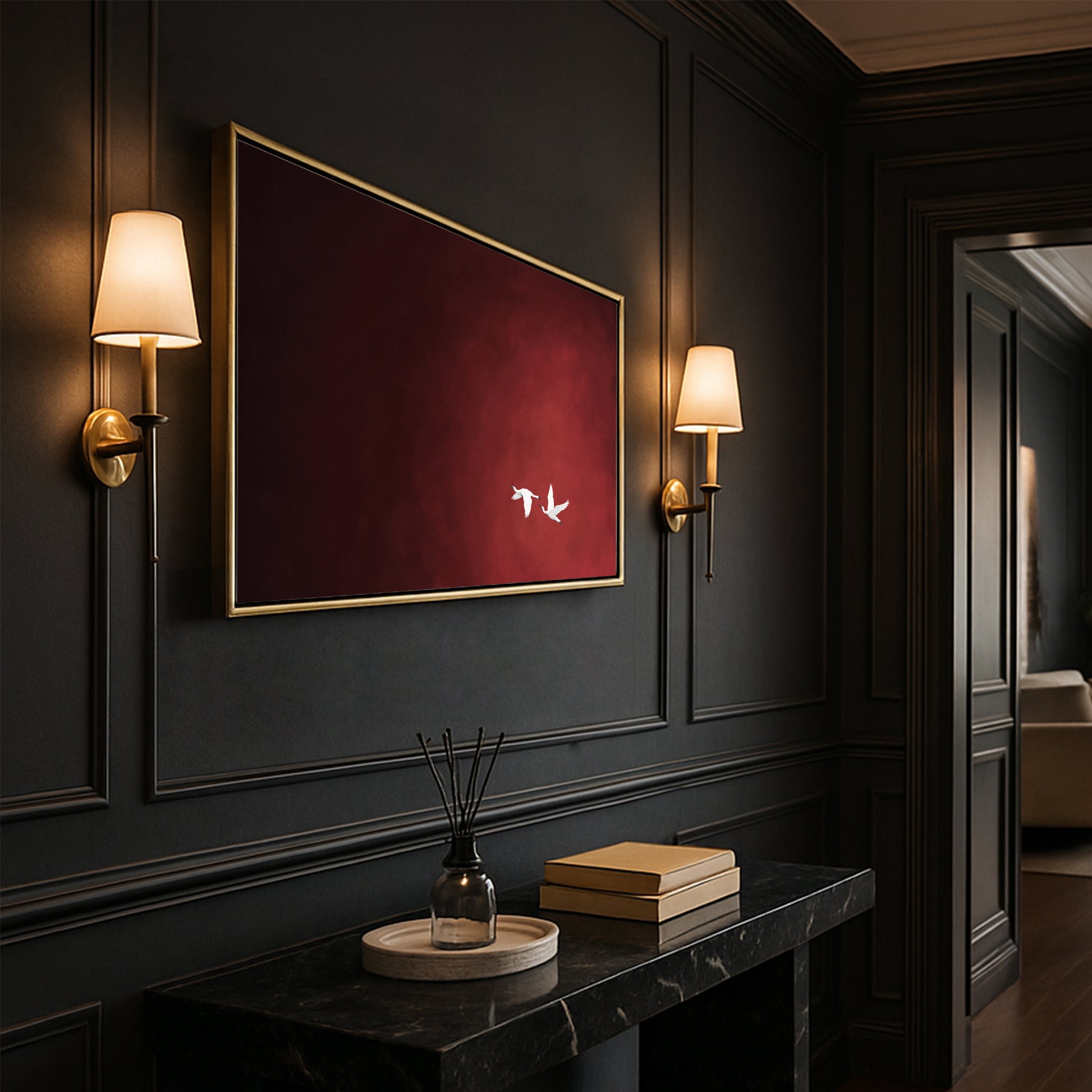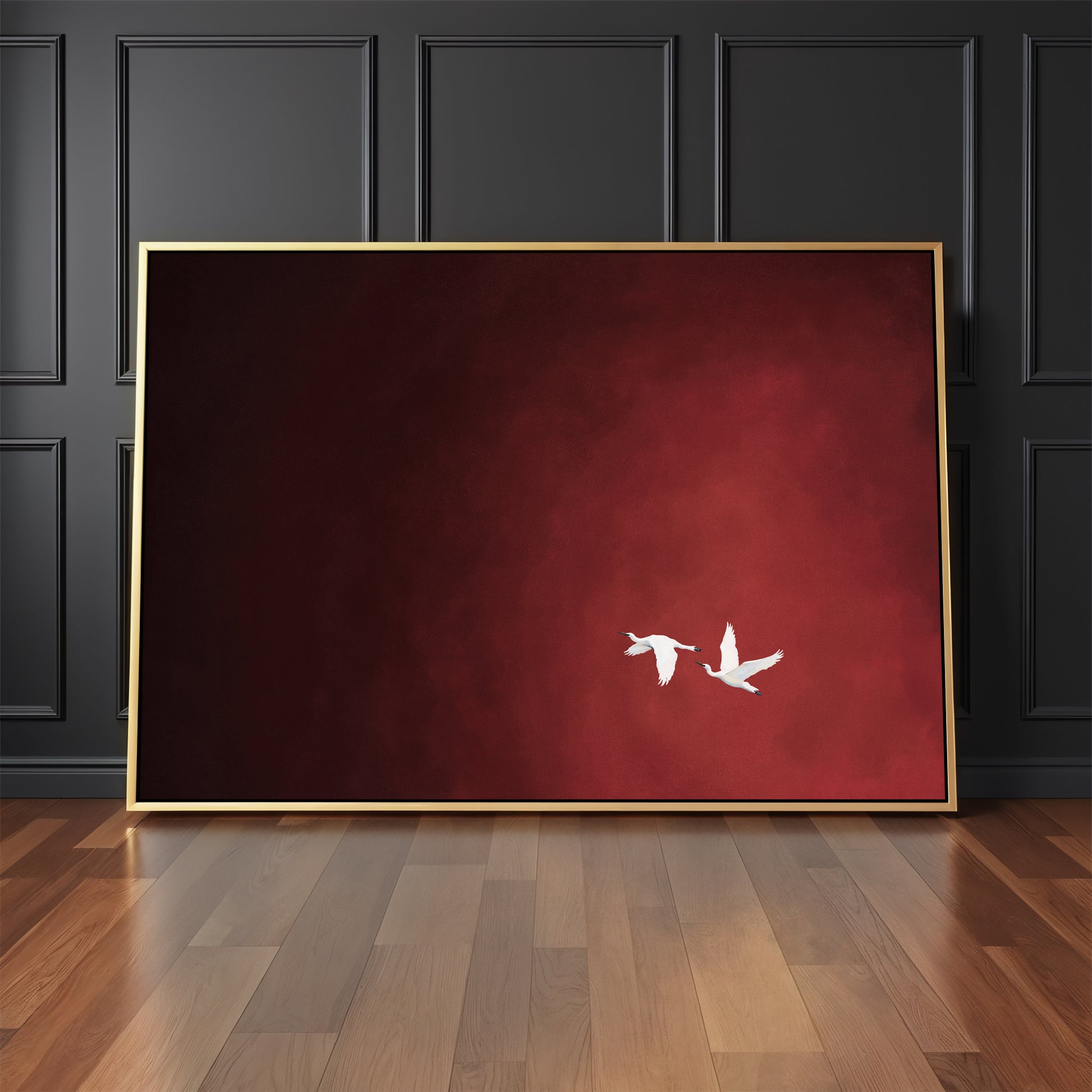 Bring timeless beauty and serenity into your space with this stunning canvas art piece. Featuring two graceful white cranes soaring across a deep, textured red background, this artwork captures the essence of freedom, balance, and harmony. The rich, warm tones combined with the delicate detail of the birds make it a striking focal point for any room.