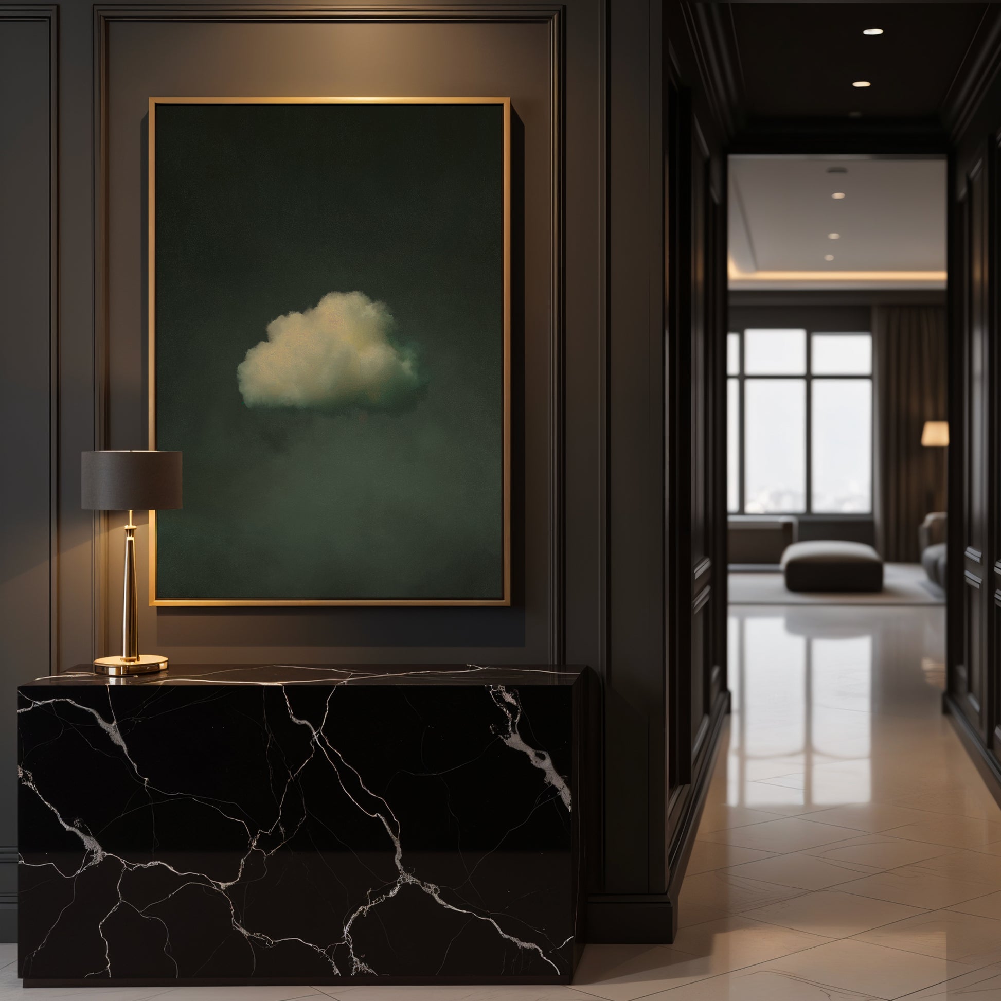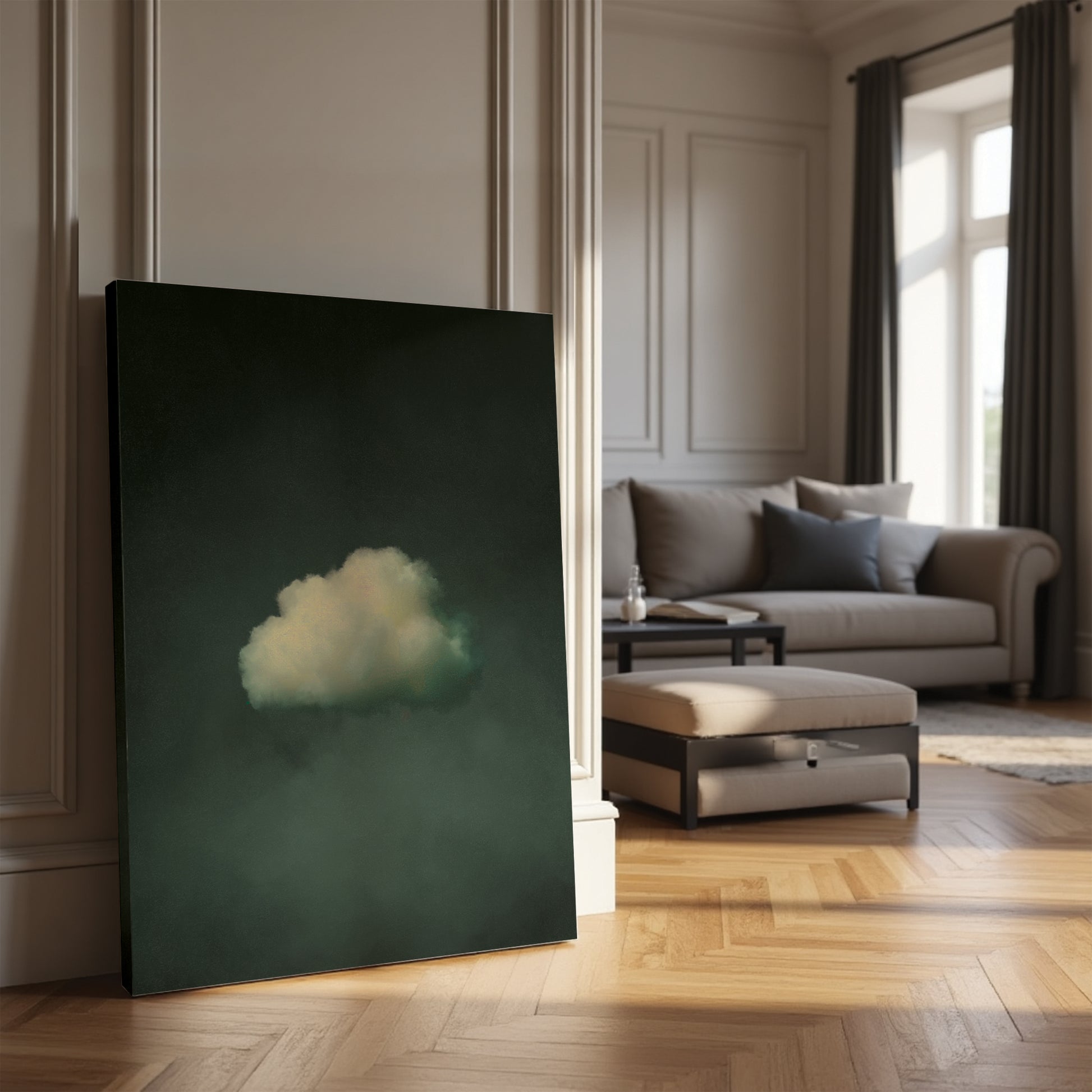 Embrace quiet elegance with this minimalist dark cloud canvas wall art, capturing a single, soft cloud suspended in a deep, moody green sky. This atmospheric piece blends surreal simplicity with natural beauty, creating a calming and contemplative focal point for any modern space.