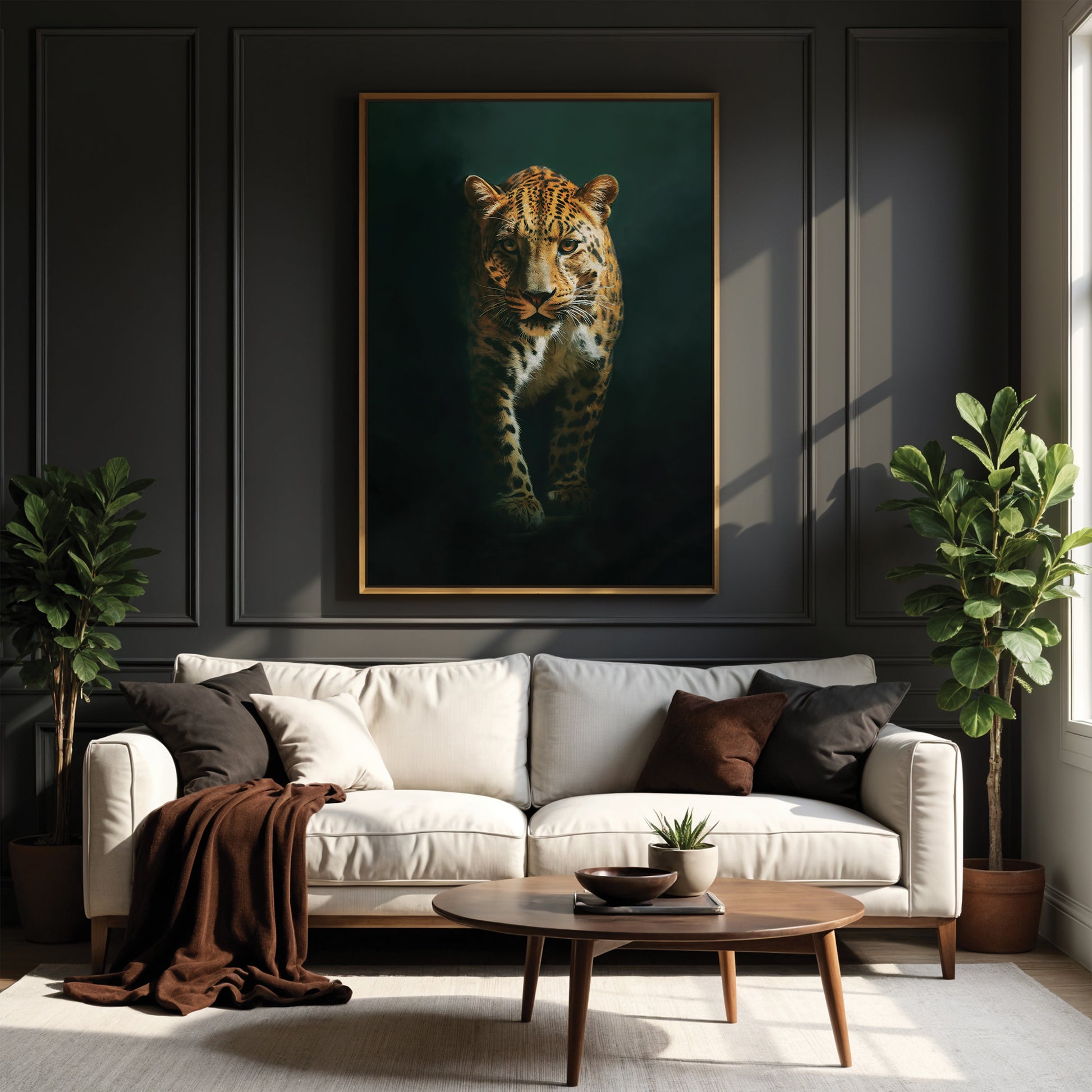 Add a touch of untamed beauty to your space with this bold leopard print set against a deep emerald green background. Striking and sophisticated, it’s the perfect piece for bringing a sense of strength, mystery, and modern jungle vibes to your decor.